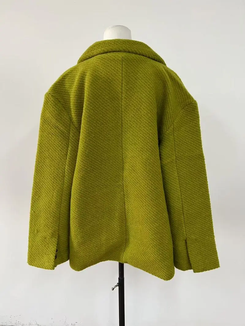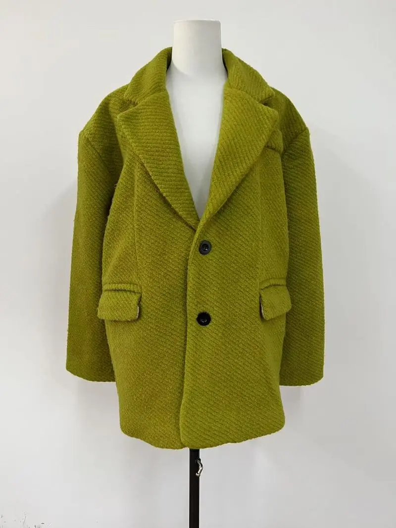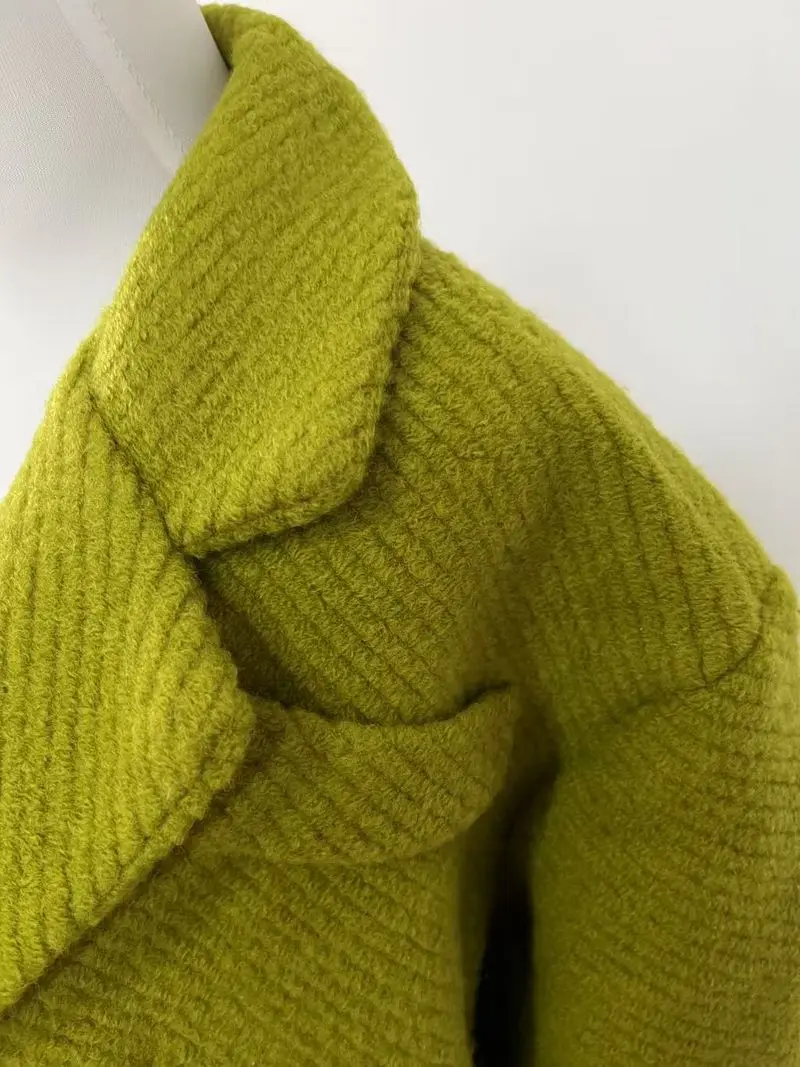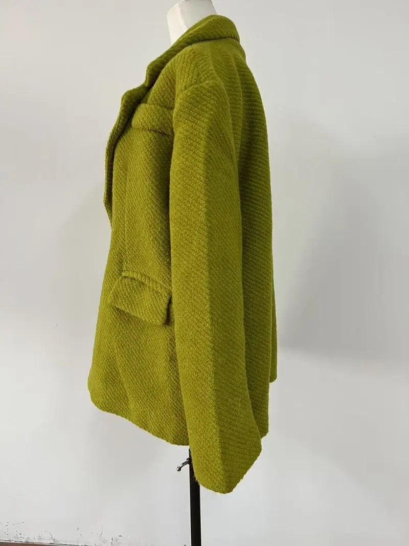 Insozkdg Mustard Green Woolen Women Jackets 2025 New Autumn Winter High-end Sense Loose Mid-length Casual Coat Women Clothing