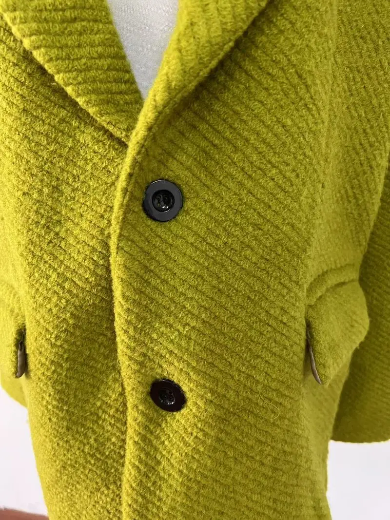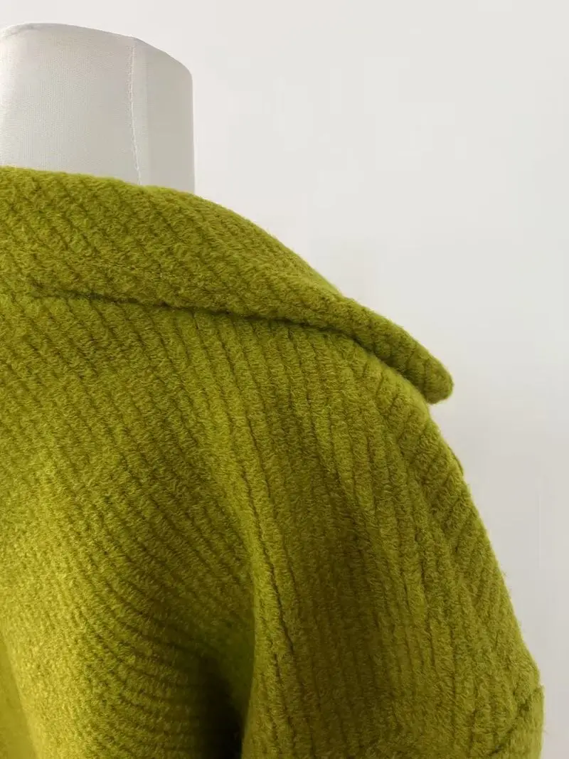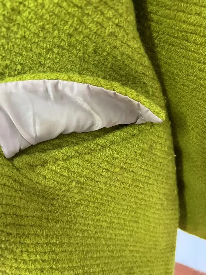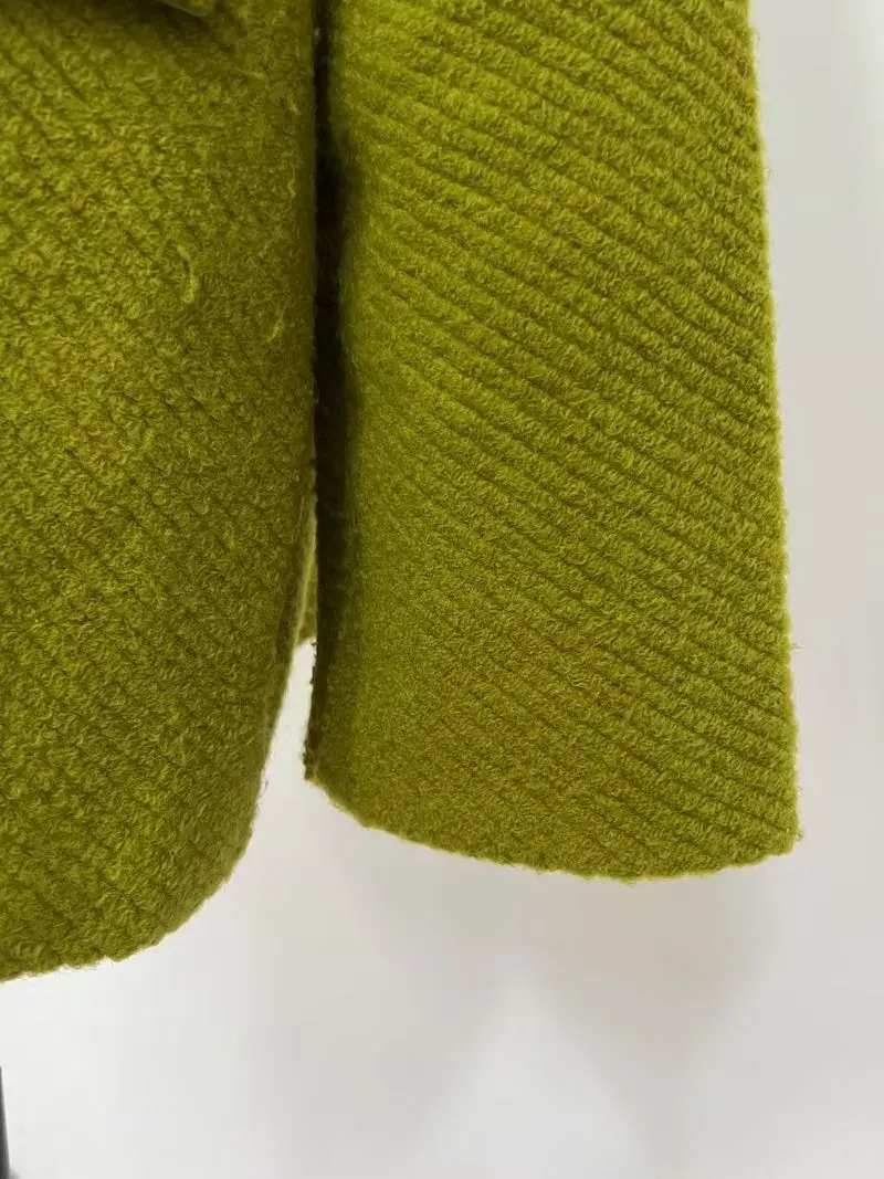Insozkdg Mustard Green Woolen Women Jackets 2025 New Autumn Winter High-end Sense Loose Mid-length Casual Coat Women Clothing