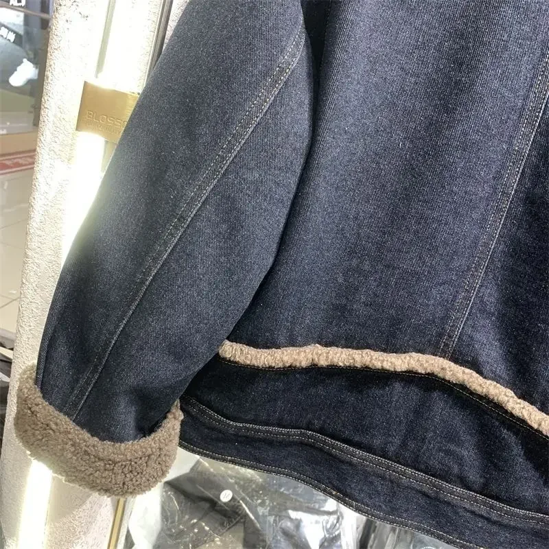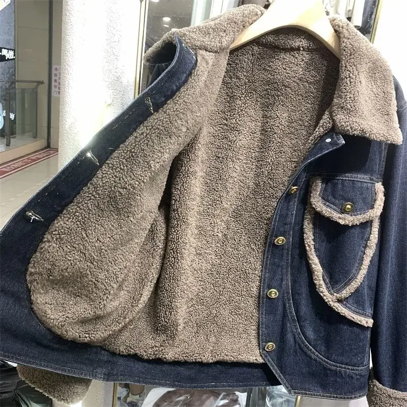 Stay warm and stylish with this cozy fur plush denim jacket. Featuring soft wool lining inside and padded construction, this short crop jacket combines classic denim style with winter warmth for the perfect cold-weather outerwear.